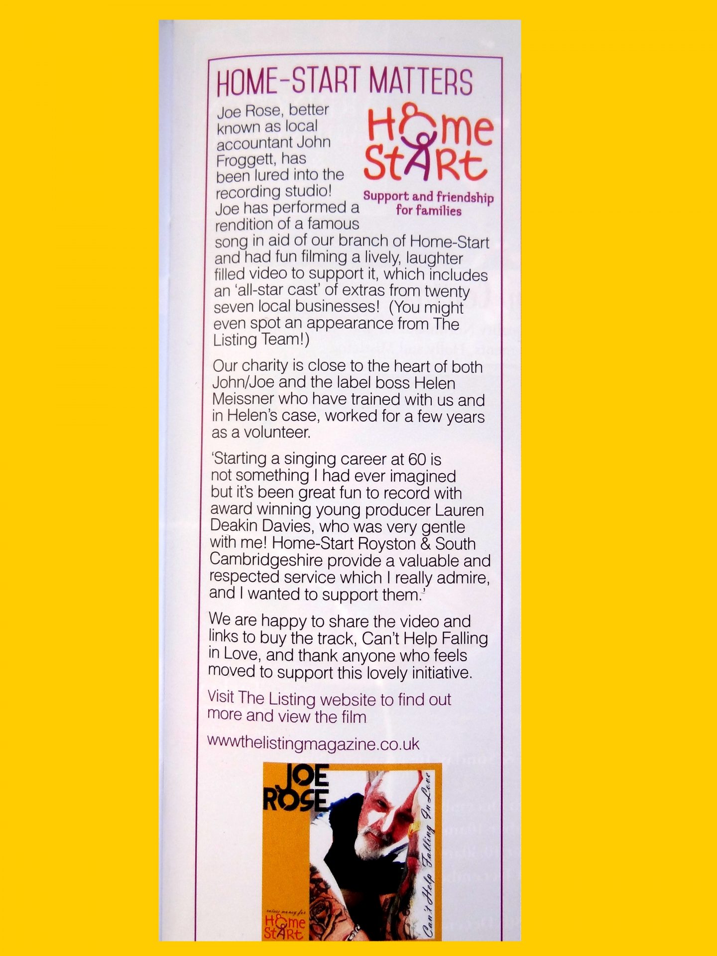 We were proud Ambassadors of Home-Start Hertfordshire and enjoyed our collaboration before lockdown following our first charity single with Home-Start Royston and South Cambridgeshire in 2018. (More on that if you scroll down).